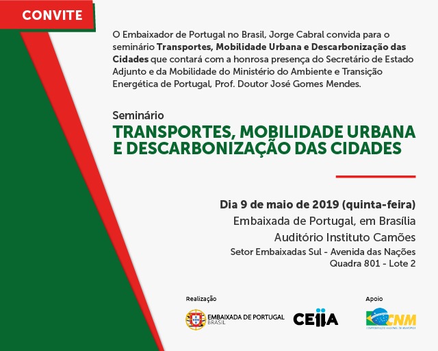Gestores e interessados no tema de trânsito e mobilidade podem participar do seminário Transportes, Mobilidade Urbana e Descarbonização das Cidades em 9 de maio, em Brasília. A Confederação Nacional de Municípios (CNM) apoia a iniciativa em parceria com a embaixada de Portugal, que sediará o evento.